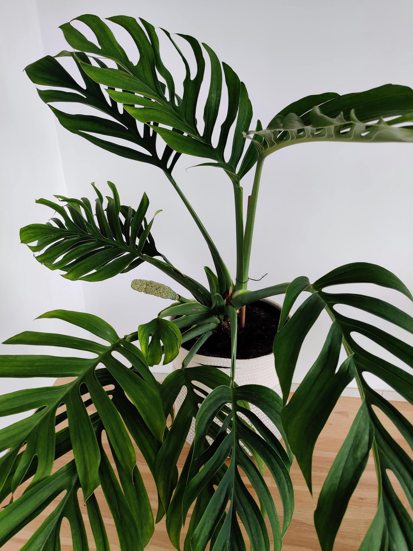 Philodendron pinnatipartita is an evergreen tropical climbing plant prized for its dramatic, deeply lobed leaves that become more fenestrated as it matures. The juvenile form has solid, heart-shaped leaves, while the mature form develops splits that reach almost all the way to the midrib. Despite being a rarer variety of aroid, it is relatively simple to care for and is a popular choice among plant collectors.