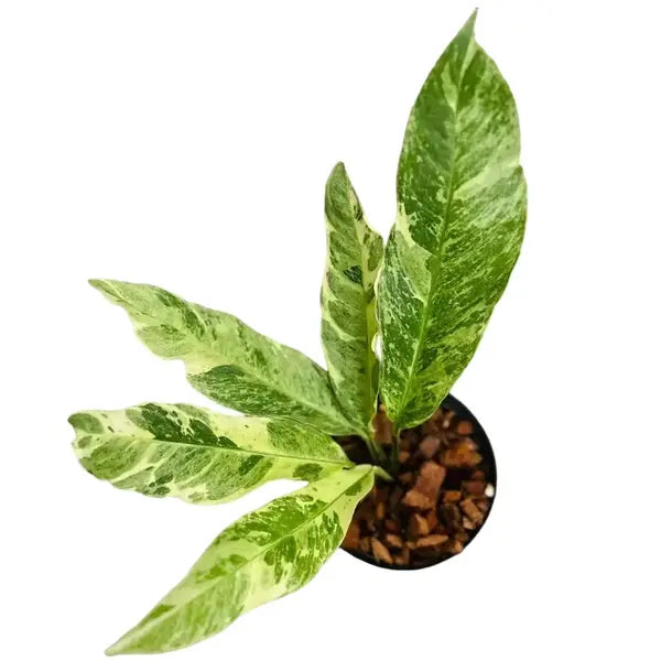 The Rhaphidophora Foraminifera Albo Variegated plant is a distinctive variety known for its unique and eye-catching foliage. Originating from tropical regions, this houseplant features large, heart-shaped leaves adorned with a striking mix of green and white variegation. With a climbing growth habit, it can be trained to climb or cascade, adding a touch of elegance to indoor spaces. Known for its adaptability, it typically thrives in moderate to bright indirect light and requires well-draining soil. This Rhaphidophora variety is sought after by plant enthusiasts for its ornamental appeal and ability to thrive as a statement piece in interior decor.