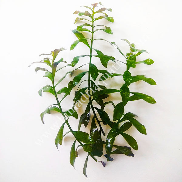 The flower has four yellow-colored petals no more than 3 millimeters long nested on a base of four-pointed sepals which may be slightly longer. It makes a fine color contrast to the green shades in the aquarium. Plant in large groups to enhance the decorative effect and prune regularly to encourage bushy growth. The plant makes few demands, but if the light is insufficient the lower leaves tend to fall off. In strong light, the color becomes more intense.