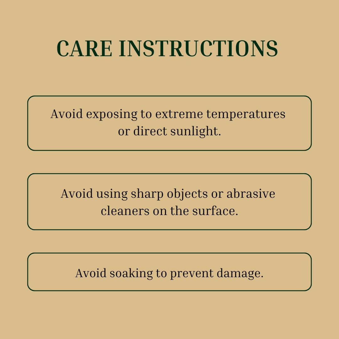 CARE INSTRUCTIONS: 1) Keep away from extreme heat and direct sunlight. 2) Suitable for both, but bring indoors during harsh weather. 3) Ensure proper drainage; do not let water stand. 4) Clean with mild soapy water; avoid harsh chemicals.
