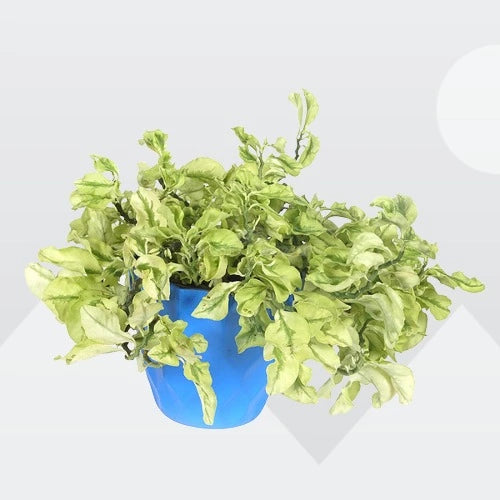 This plant is also called the Pedilanthus 'Curly Pink', this plant has tightly zigzagging variegated light green foliage with a tinge of pink that gives it an unusually beautiful look. The White Ghost that can lighten up your verandah and give off a soothing effect with its white leaves. If you're looking for a unique hanging plant, this is it.