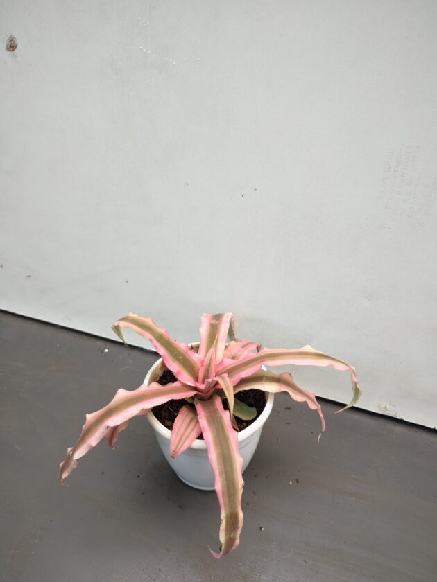 The plant Cryptanthus 'Pink Starlight' (Cryptanthus bivittatus) has a little rosette of pink and cream with dark olive-green stripes in the leaf centres. lovely pink-tinged white and green leaves! only expand to a width of around 6″. Large clusters of pink starlight are created by their quick offset. Close to the ground is a tiny rosette of leaves with pink and scarlet stripes. a dwarf bromeliad that is no taller than 4″H. a great option for terrariums, where it can serve as a groundcover for larger plants. Due to the resemblance of the leaf to a starfish, this low-maintenance houseplant is also known as the Earth Star or Starfish Plant. The pink leaf hues are accentuated by bright light, and it enjoys humid settings. You will soon have a large number of "Pink Stars" to admire since Cryptanthus reproduces by creating "pups" or offset plants.