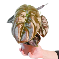 This alocasia is so shiny and pretty that you might fall into a trance and lose track of time! The intricate leaves have deep ridges and texture, almost reptilian-like but glow with a radiant burgundy red! Treat the Red Secret Alocasia with water when the soil is partially dry and give it access to plenty of indirect sunlight. This plant is toxic if ingested and may cause skin irritation. Keep away from pets and children.
