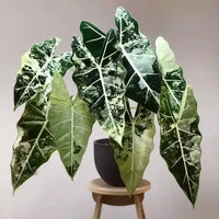 Alocasia Frydek Variegata needs more light than other Alocasia to thrive due to its variegation. The more white its leaves, the more light you will need to provide it with. A bright indirect light position is a must to keep this plant thriving. Alocasia require high humidity levels of at least 60%. For instance, a humidifier, pebble tray or grouping plants together can help you raise humidity.