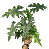Alocasia Jacklyn is a stunning Aroid with deeply lobed, arrowhead-shaped foliage. The vibrant green leaves have prominent, contrasting blackish green veins. This Alocasia is a rare and highly sought-after collector’s plant that is prized for its unique, badass looks!