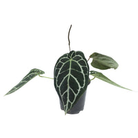 Crystal Anthurium is a popular tropical houseplant, typically grown for its foliage over its flowers. The leaves are dark green with attractive and prominent white veins.