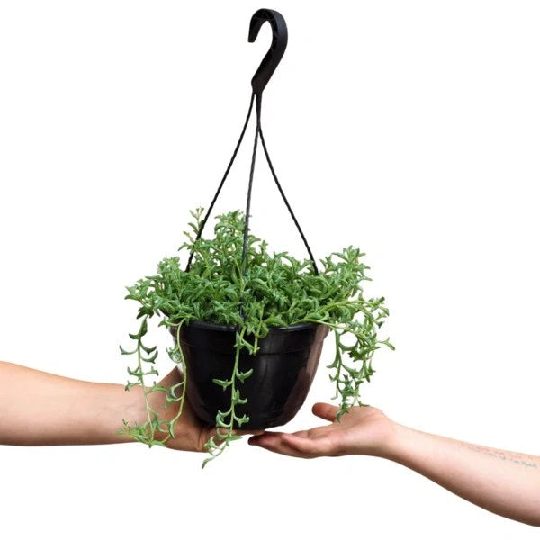 It can grow up to 3 feet long and 6 inches tall, making it ideal for hanging baskets or spilling over shelves.